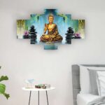 Buddha Set of Five 3D Framed Paintings for Wall Decoration – Ideal for Home, Living Room, and Bedroom (75 x 43 CM)